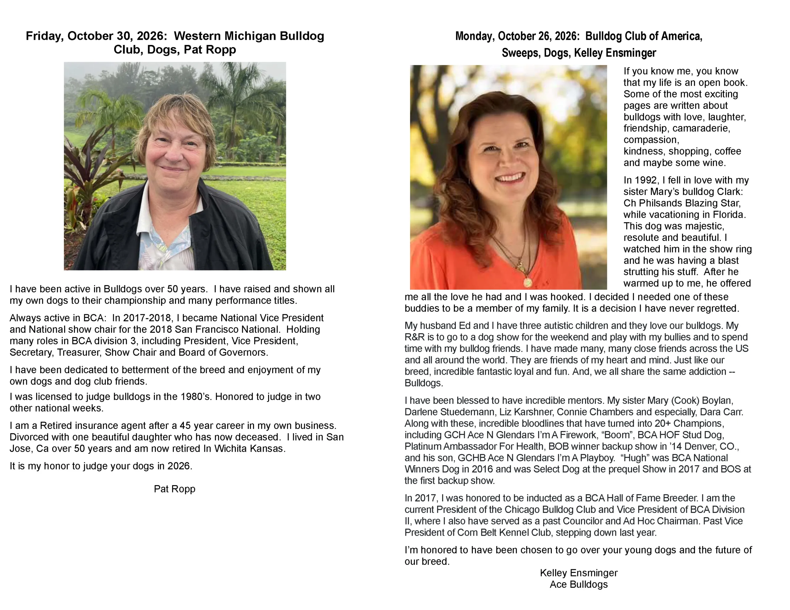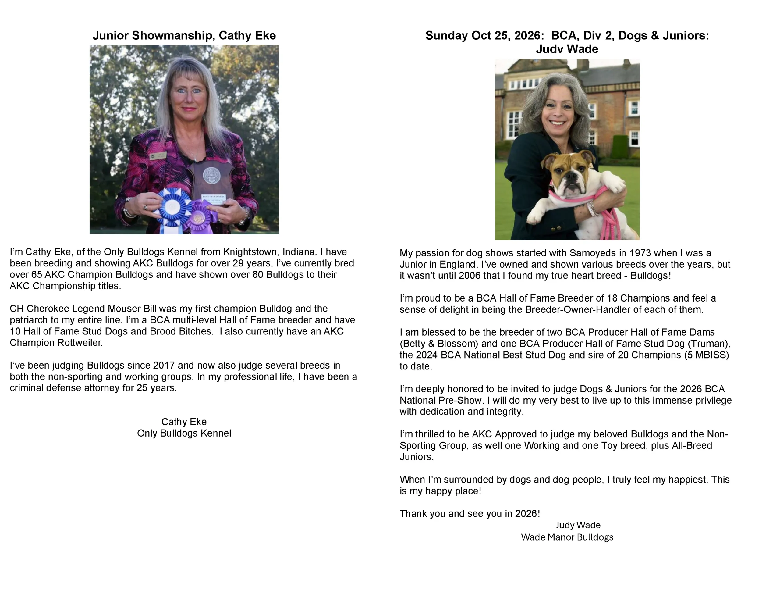 Presenting 2026 National Show Week Specialty, Junior Showmanship, Rally & Obedience Judges